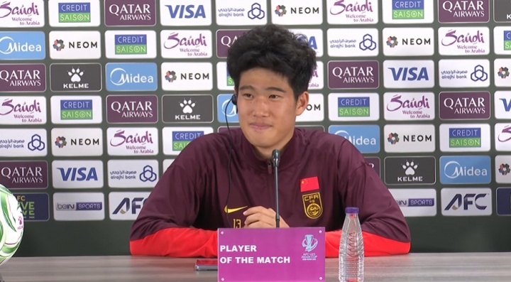 中国男足U23以3-0击败越南U23挺进决赛,现场直击全场最佳球员彭啸的赛后发布会。