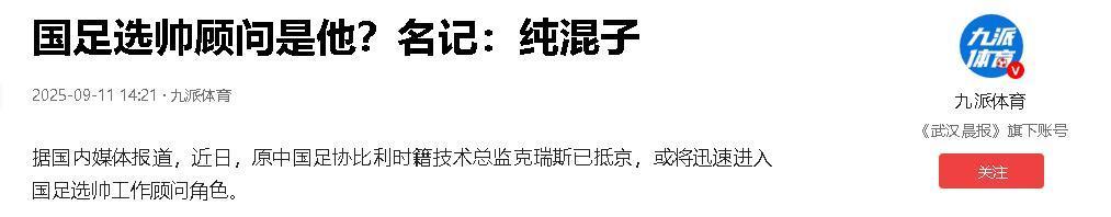 信息来源《国足选帅顾问是他?名记:纯混子》——九派新闻