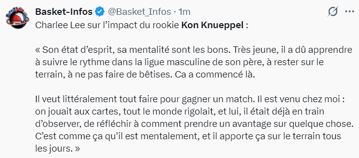 克努佩尔的队友布兰登-米勒谈到弗拉格与克努佩尔的最佳新秀之争,他说道:我从第一天开始就说克努佩尔就是最佳新秀,我不想再说一遍。